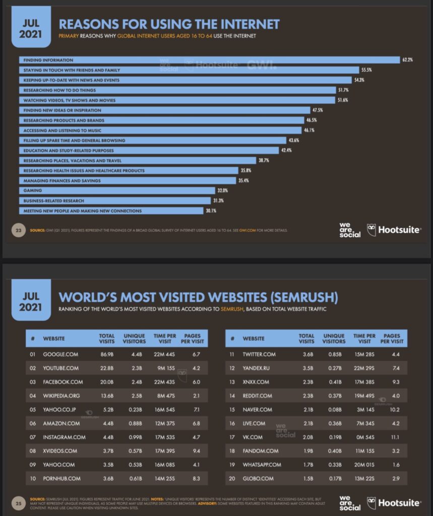 les raisons d’utilisation d’internet – les sites web les plus utilisés dans le monde