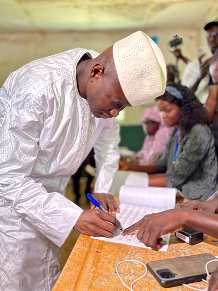 « C’est avec plaisir que j’ai accompli ,ce matin , mon devoir civique d’électeur. Je salue la qualité de l’organisation du vote , la mobilisation des citoyens et la sérénité qui s’ y affichent. J’exhorte tous les citoyens Sénégalais inscrits en à faire de même pour le bien de notre démocratie» .