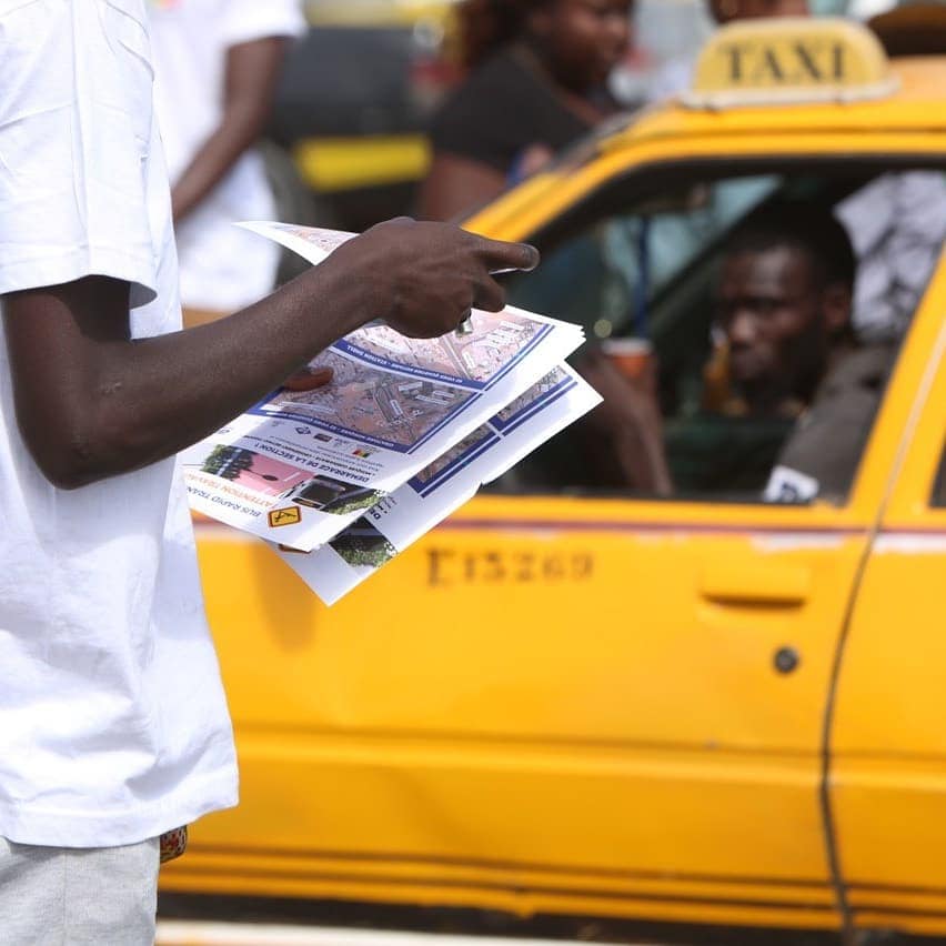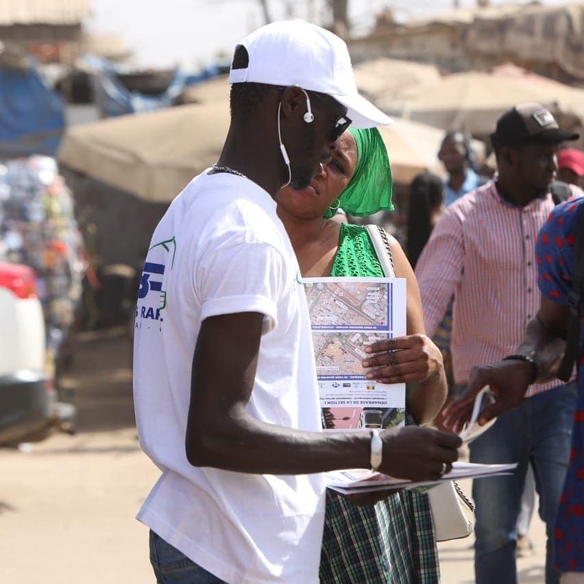 Nous voilà au deuxième jour de la caravane de sensibilisation sur le corridor du BRT. Une présentation et distribution du plan de circulation aux citoyens est en cours.