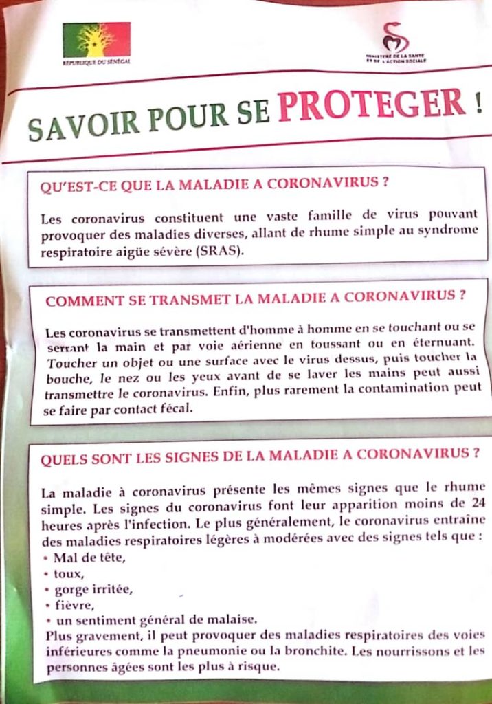 Ledakarois221- Comme nous l'avons tantôt annoncé, le Sénégal enregistre son premier cas de Coronavirus. Des dispositions ont été prises pour prévenir et se protéger de cette maladie