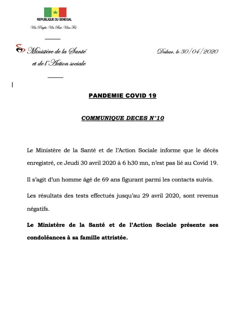 Ledakarois221- Dans nos récentes publications, nous annoncions le décès d’une personne placée en isolement ce jeudi 30 avril. Il s’agit d’un cas suspect du Coronavirus qui était en attente de résultats de tests. Le ministère de la santé et de l’action sociale a tenu à apporter la lumière sur cette affaire à travers le communiqué ci-après parvenu à D221