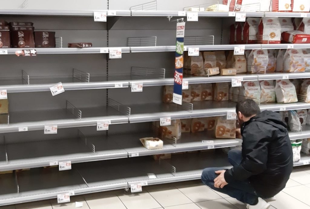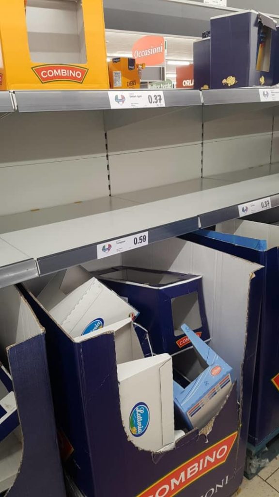 Ledakarois221- L’Italie, un des premiers pays mis en quarantaine face au virus coronavirus qui ne cesse de faire des ravages est face à un autre problème : rupture des denrées de premières nécessités.