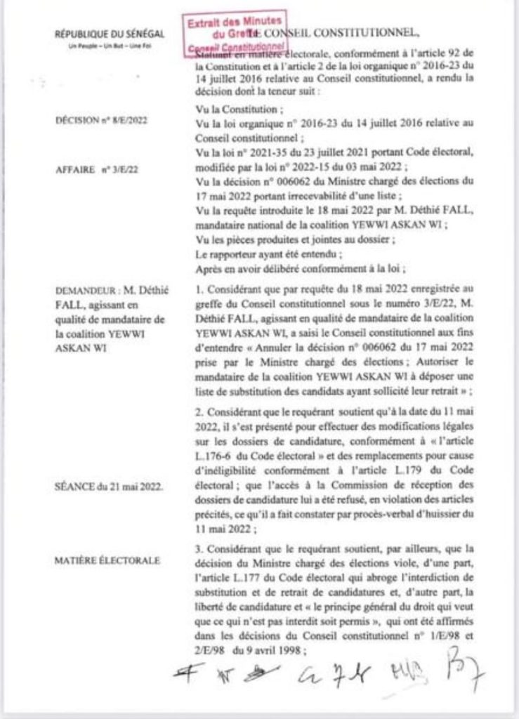 Ce mercredi dernier, Déthié Fall, mandataire national de la coalition Yewwi Askan WI, a déposé un recours. D’après les 7 Sages, « les arguments évoqués par la Direction générale des élections » pour rejeter la liste départementale de YAW « ne sont pas valables ».