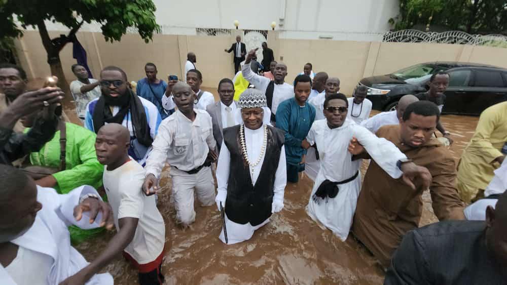 C’est sous la forte pluie que le guide de la Révolution Pacifique est sortie, manifester son soutien à toutes les victimes des dégâts naturels causés par la pluie par une forte pensée, avant d’être raccompagné par la presse pour faire une déclaration à l’intérieur de son domicile : « Je suis sortie et marché avec vous sous la pluie et les eaux pour manifester non seulement mon soutien à toutes ces victimes de l’inondation, mais aussi montrer à tout le monde que nous devons accepter la volonté divine et faire preuve de patience et de reconnaissance vis à vis des efforts du Chef de l’État. » Dit-il.