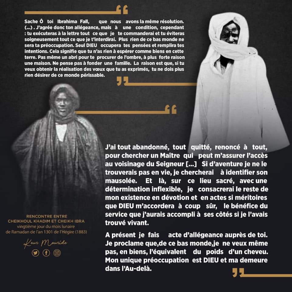 Cette année , ça coïncide aussi avec la rencontre entre Mame Cheikh Ibrahima FALL Baboul Mouridina et son guide spirituel Cheikhoul Khadim , le Serviteur privilégié du Prophète Muhammad ( PSL ) .