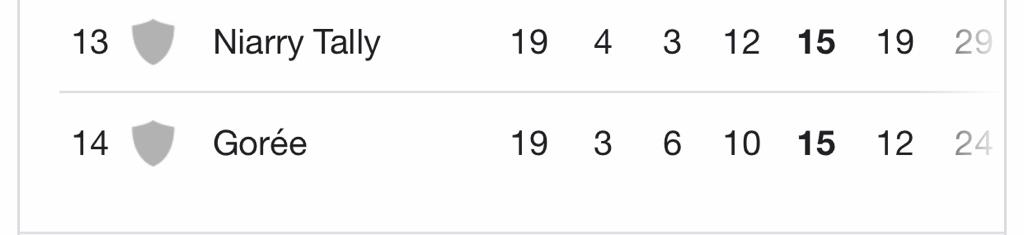 Gorée bat Mbour petite-Cote (2-0) et le NGB Niarry Tally renoue avec la victoire face au Stade de Mbour (1-0) la course au maintien s’annonce palpitante pour cette deuxième partie de championnat. Le Jaraaf de Dakar retrouve ses sensations victorieuses avec ce succès face à Ndiambour (1-0) et passe devant Dakar Sacré Cœur qui a fait (0-0) contre l’AS Douanes.