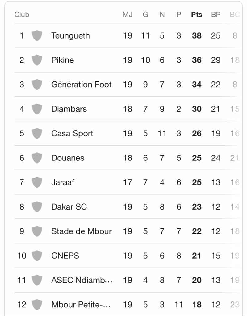 Tenue en échec par Diambars (1-1), le leader du championnat n’empoche qu’un point sur cette rencontre de même que son dauphin l’AS Pikine qui concède le nul (0-0) face au Casa Sport.