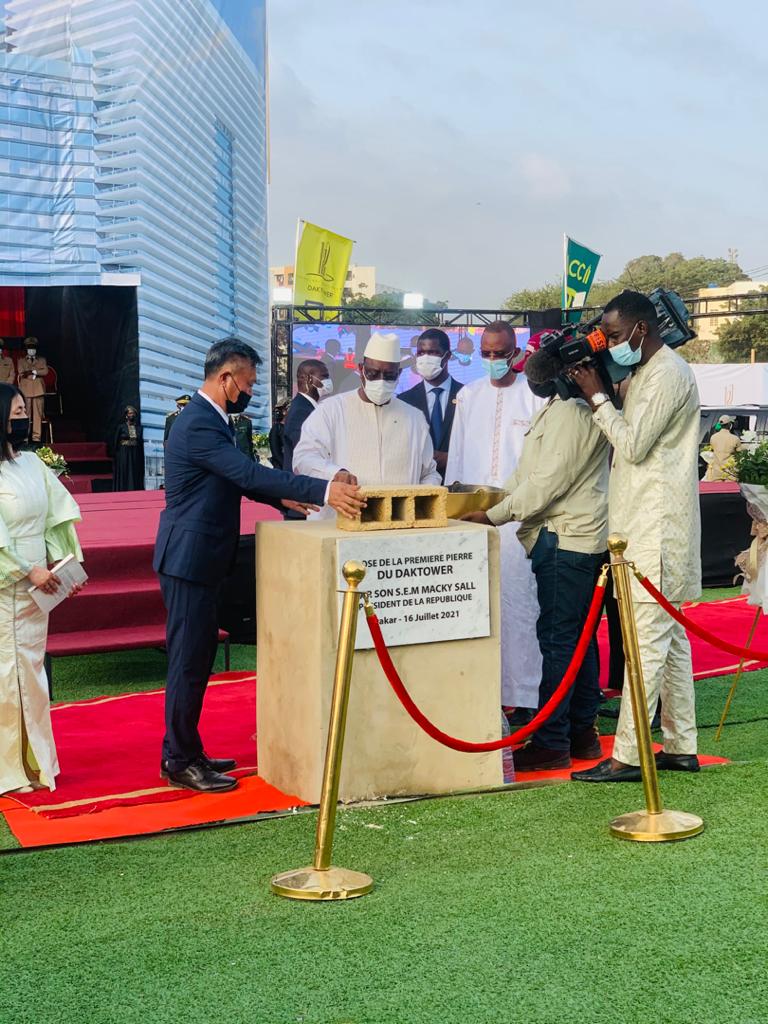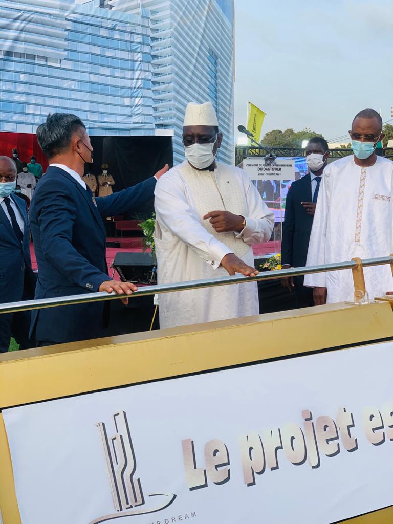 A l’occasion de la cérémonie de lancement officiel du projet DAKTOWER, ce vendredi 16 juillet, Présidé par le chef de l’Etat Macky sall, il a procédé à la pose de la 1ère pierre de ce le président du conseil d’administration du ACCI M. Daï appelle “superstructure” l’immeuble le plus haut de la capital sénégalaise 122m de hauteur bâti sur une superficie de 130 milles m2 en face de la mer.