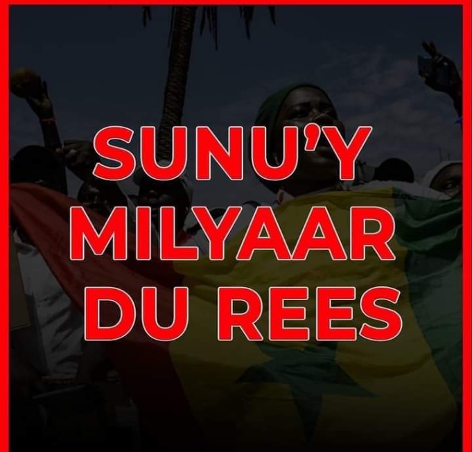 Situé à la place de la nation, à Dakar, les manifestants avaient comme slogan : « SUNU’Y MILLIAR DU RESS », ils réclament bien sûr,  les 6 686 784 410 comme l’indique ledit rapport sur la gestion des 1 000 alloués à la riposte contre la covid-19, «  impact financier des manquements à soumettre à l’autorité judiciaire ». Le Gouvernement, dans sa politique de communication déclarait à travers son ministre des Finances malgré ce détournement que 99% de Fonds alloués à la lutte contre la pandémie à coronavirus   ont été bien gérés. Ce que la population civile qualifie de carnage financier, de braquage de dealers de « Sunu’y milliar ress ».
