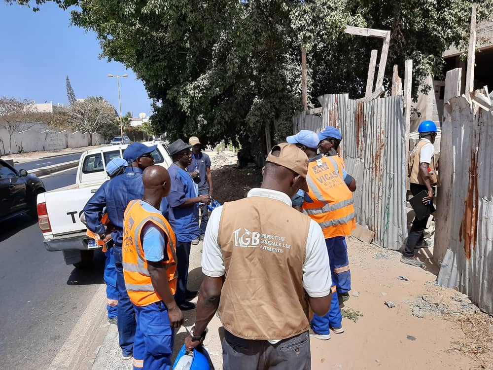 Opération de vérification des bâtiments en constructionCe vendredi 06 mars 2020, les services du Ministère de l’Urbanisme, du Logement et de l’Hygiène publique ont arrêté trois chantiers sur la Corniche Ouest et à Fann Résidence. L’opération s’est déroulée sous la supervision du Directeur Général de la Construction et de l’Habitat, M. Ousmane Wade accompagné par la Directrice de la Construction, Mme Katy Ndiaye Diallo et l’Inspecteur général des bâtiments, M. Jonas Martin Biagui.Les motifs vont du non respect des normes de construction à la construction de bâtiments sans autorisation en passant par les espaces vivants meublés de gravats et les dépotoirs sauvages.