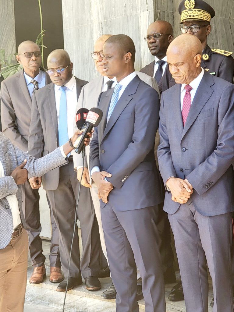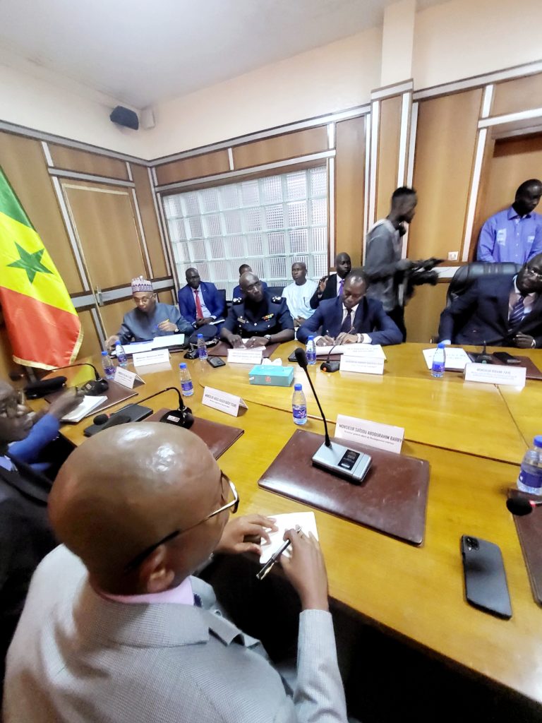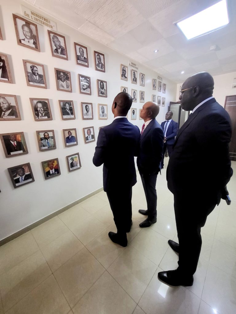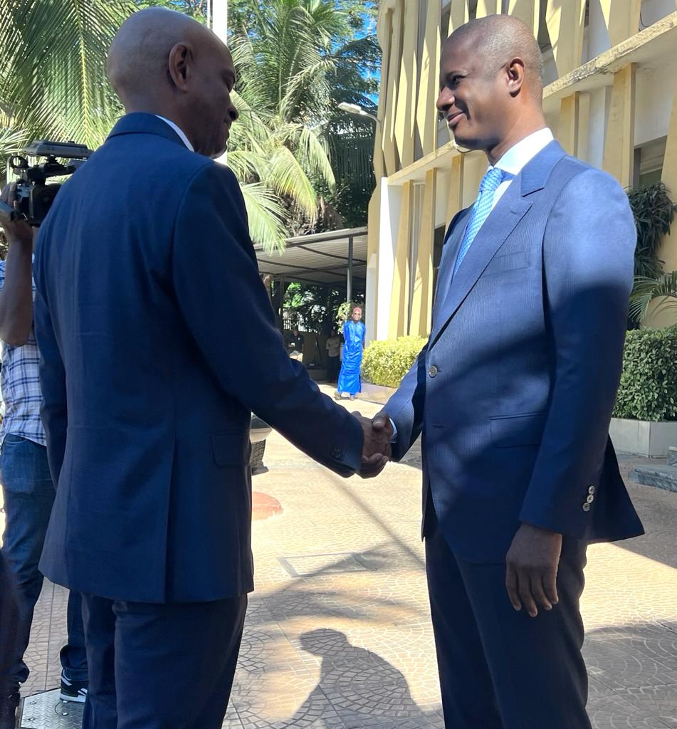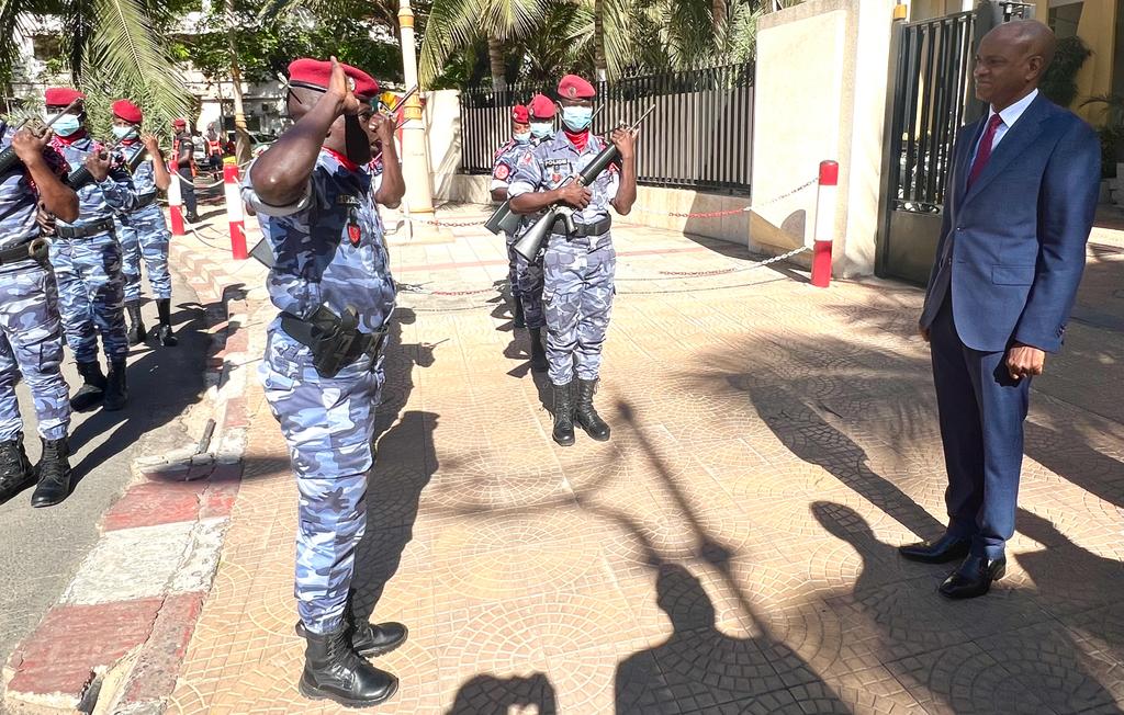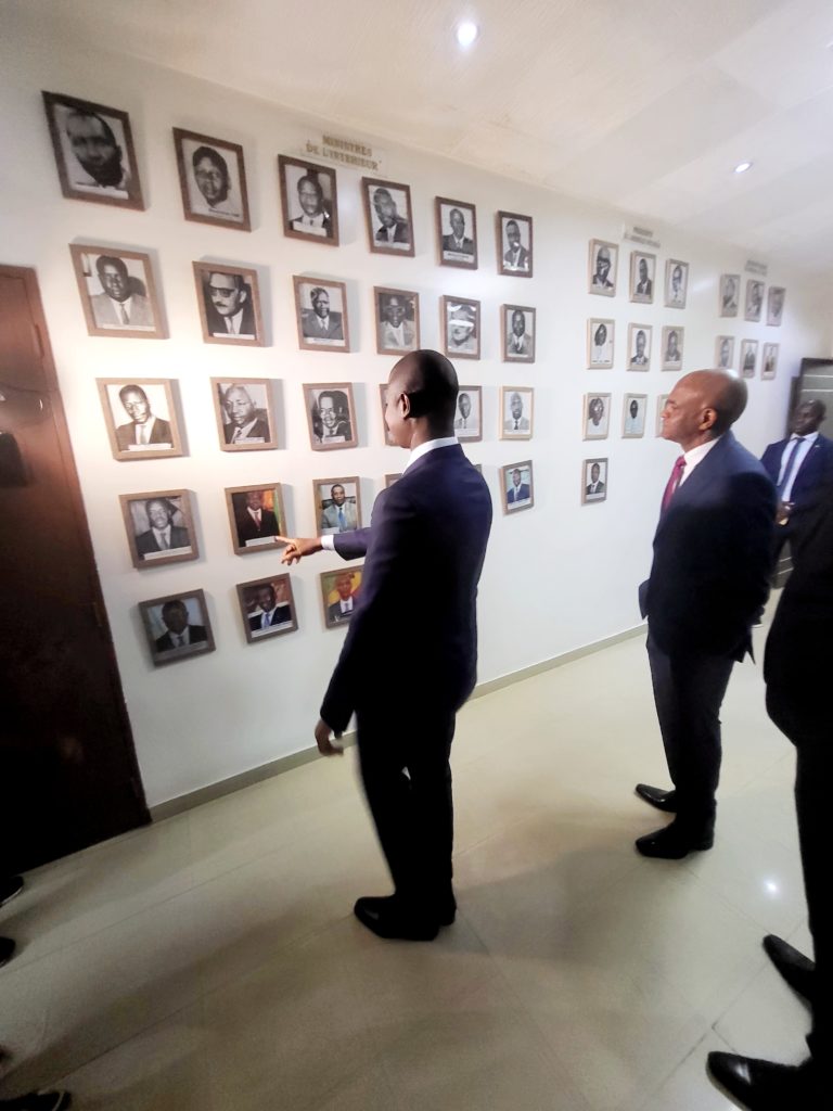 Il a été accueillis par son homologue Ministre de l’intérieur Monsieur Antoine Félix Abdalah Diome accompagné du Ministre auprès du Ministre de l’intérieur Monsieur Bireum Faye.