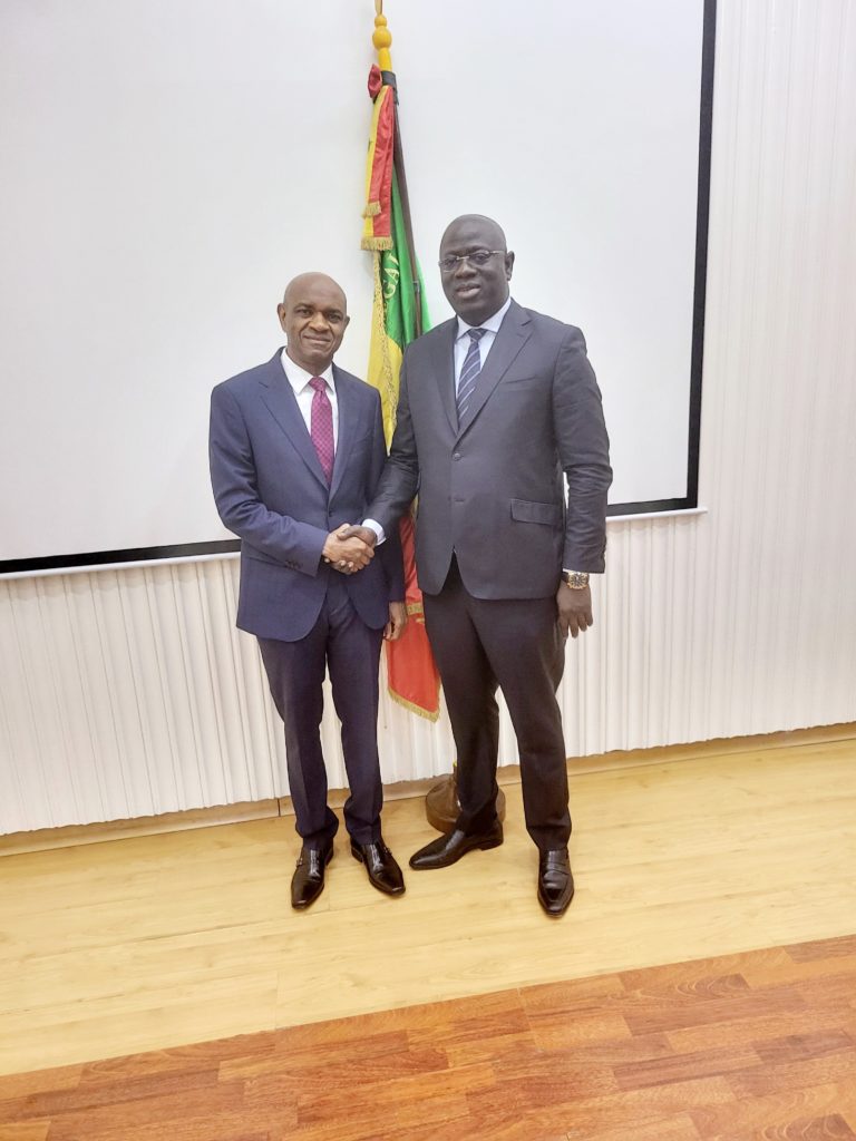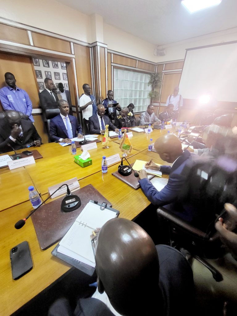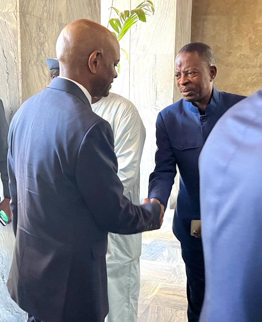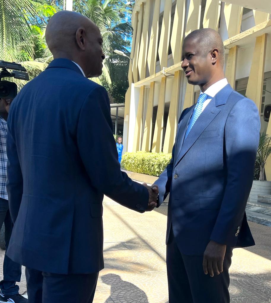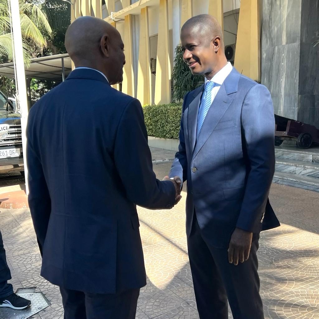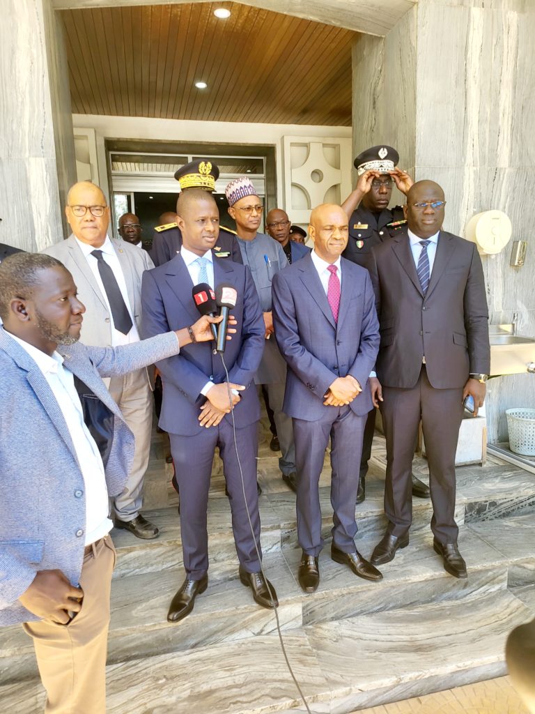 Il a été accueillis par son homologue Ministre de l’intérieur Monsieur Antoine Félix Abdalah Diome accompagné du Ministre auprès du Ministre de l’intérieur Monsieur Bireum Faye.
